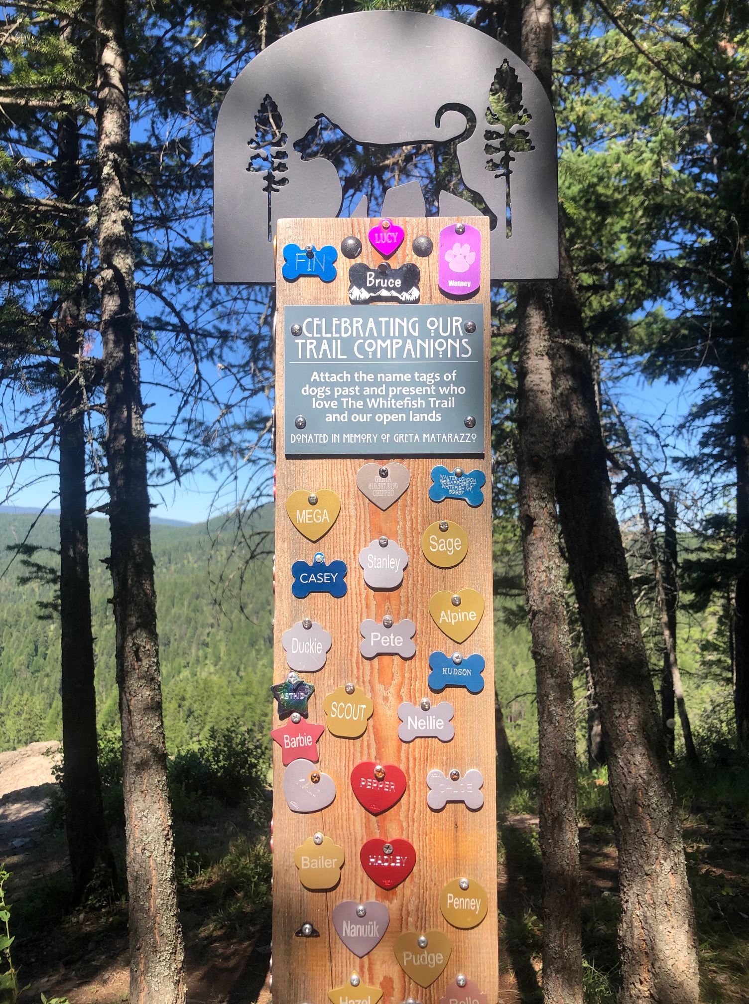 My hosts were also hosting another woman on sabbatical from teaching in Germany, so once I was there, we hit the ground running, starting with a short but beautiful hike that provided stunning views and a heartfelt tribute to the canines that used to walk that trail. The afternoon continued at Whitefish City Beach with some paddle boarding and kayaking, but also a vitally long nap on the beach (by me). It was a lovely way to spend the day.